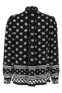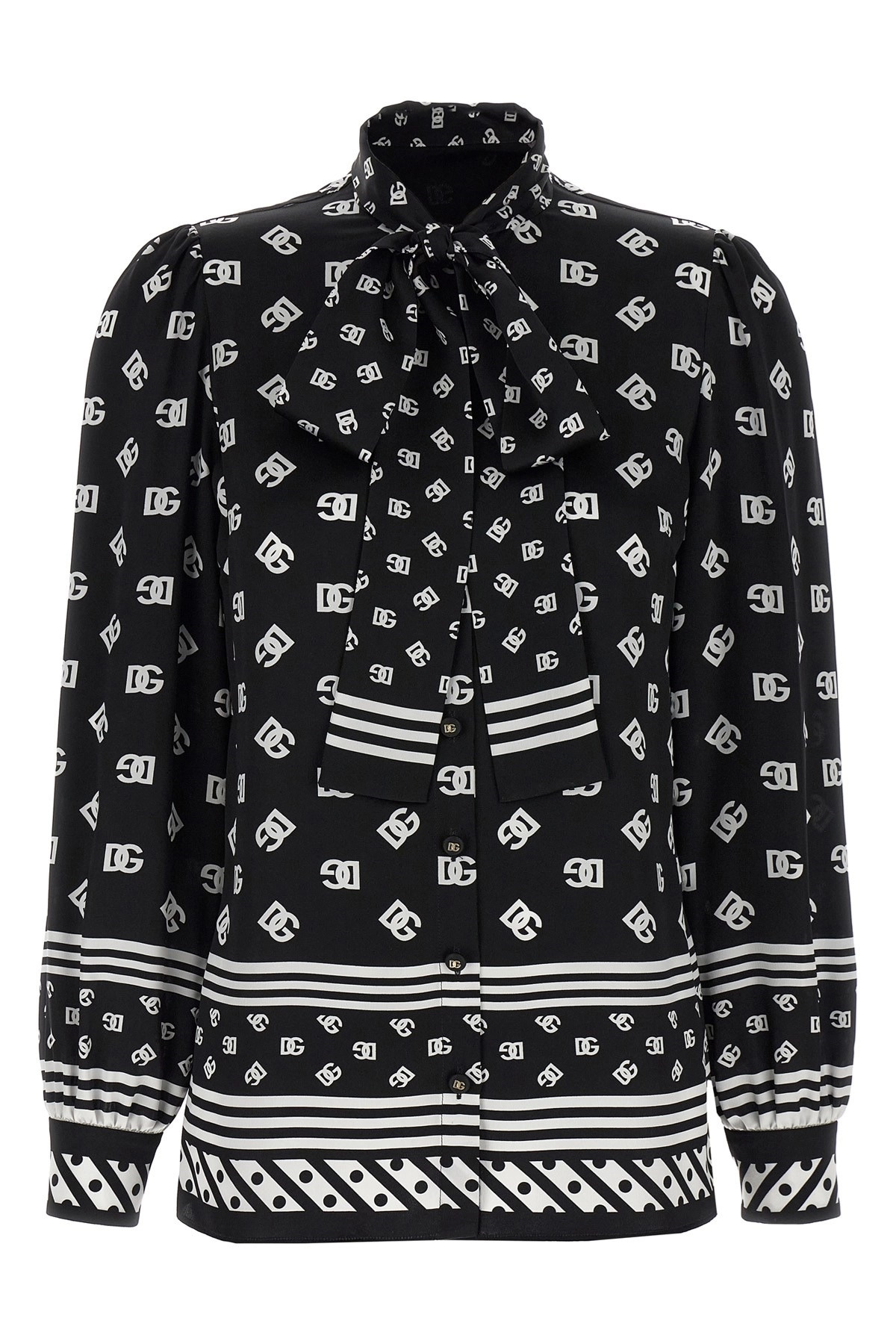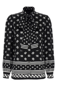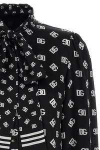 cod. F5T41THI1X1HN4ZW Silk twill shirt with all-over DG logo print, lavalliere collar, front button closure, long cuffed sleeves. Color: White/Black Size & Fit: true to size fit Composition: 100% silk Made in: Italy