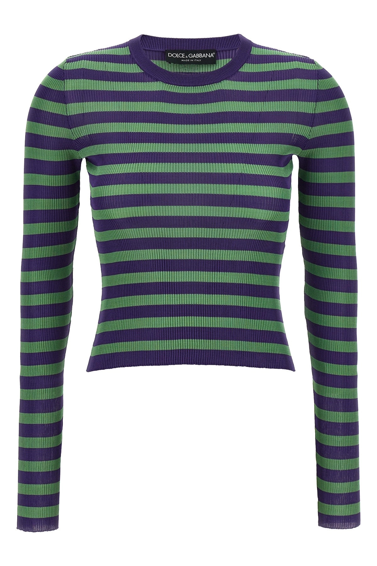 cod. FXXA9ZJAIRRV9644 Striped stretch viscose ribbed sweater, crew neck, long sleeves. Color: Multicolor Size & Fit: true to size fit Composition: 100% viscose Made in: Italy