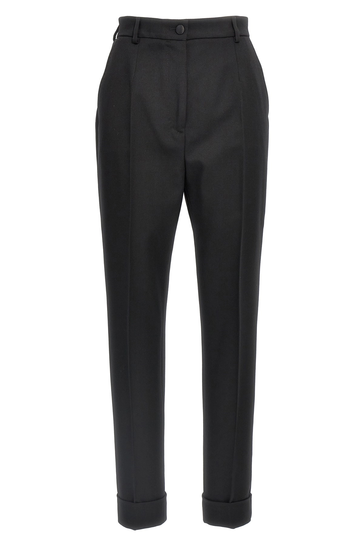cod. FTBVMTFU28JN0000 Tailored wool trousers, zip and button closure, pockets, straight leg with ironed pleat and turned-up hem. Color: Black Size & Fit: true to size fit Composition: 100% virgin wool Made in: Italy