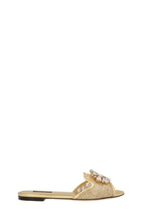 cod. CQ0023AE63780997 'Taormina' lace sandals with jewel pin. Color: Gold Size & Fit: EU WOMAN Composition: 70% polyamide 25% polyester 05% lamb Made in: Italy