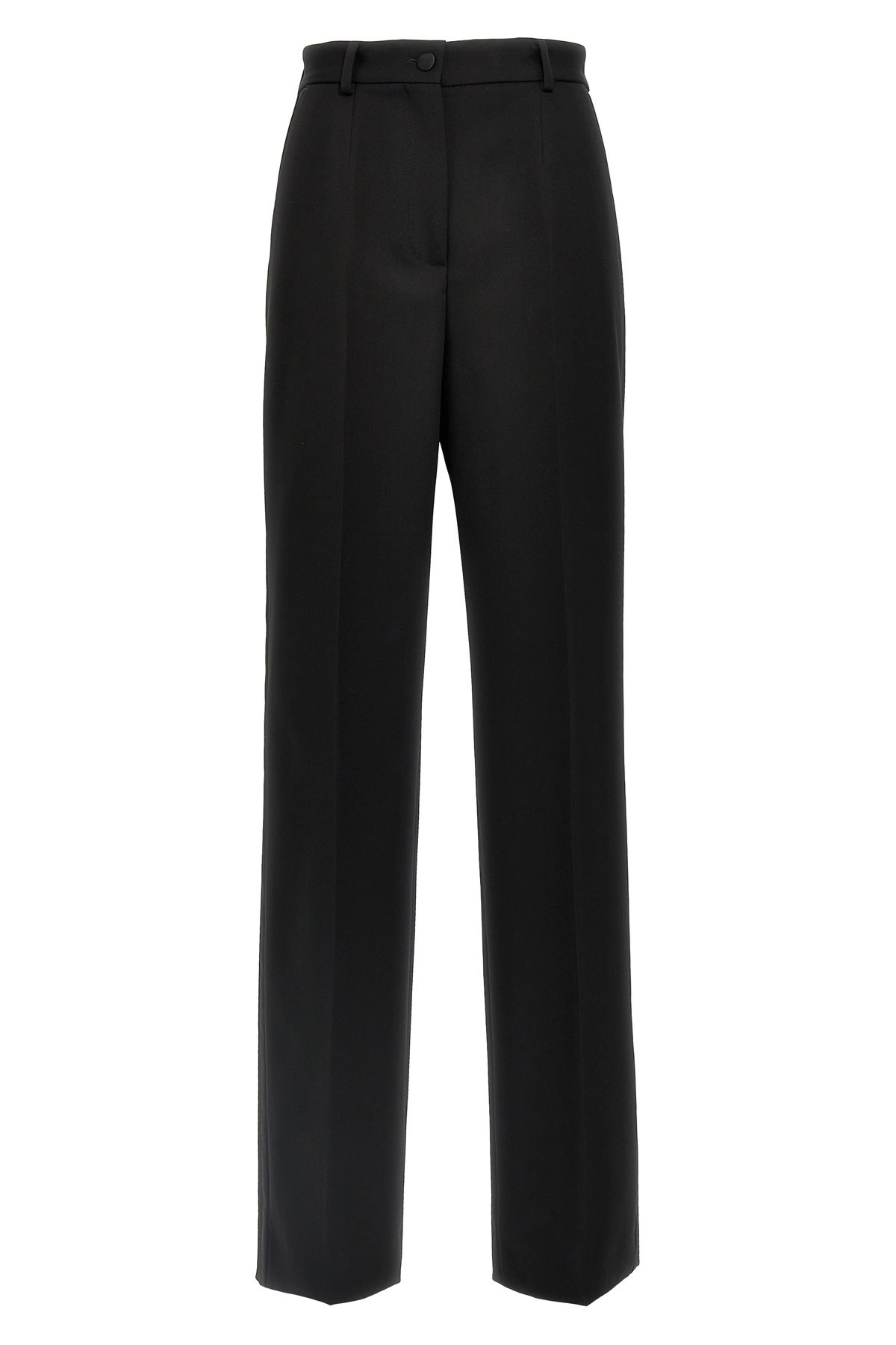 cod. FTC8ZTFU21EN0000 High-waisted tuxedo wool gabardine pants, zip and button closure, pockets. Color: Black Size & Fit: true to size fit Composition: 90% wv, 8% silk, 2% pl Made in: Italy