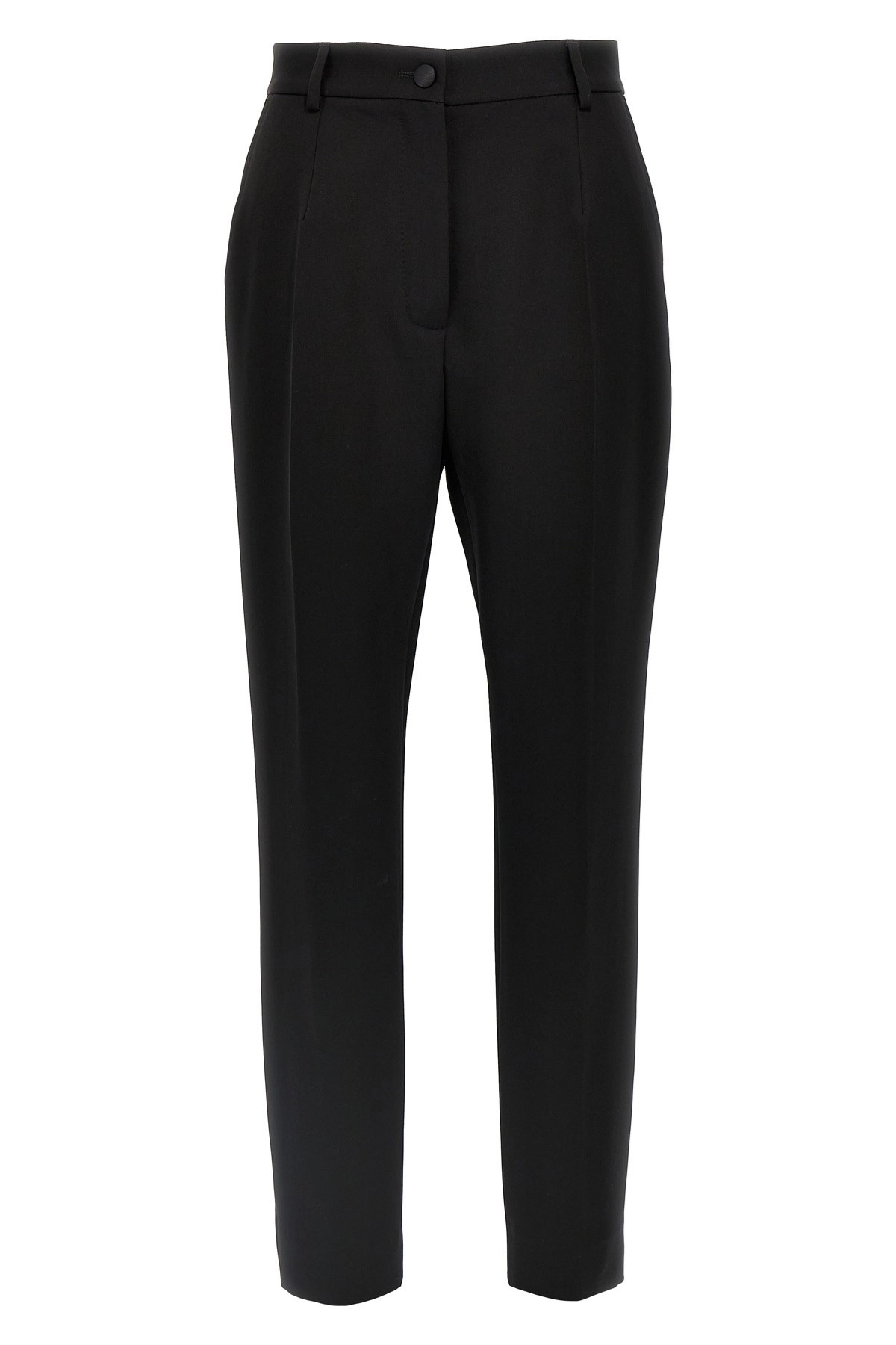 cod. FTAM0TFU21EN0000 High-waisted tuxedo wool gabardine pants, zip and button closure, pockets. Color: Black Size & Fit: true to size fit Composition: 85% wv, 12% silk, 3% pl Made in: Italy