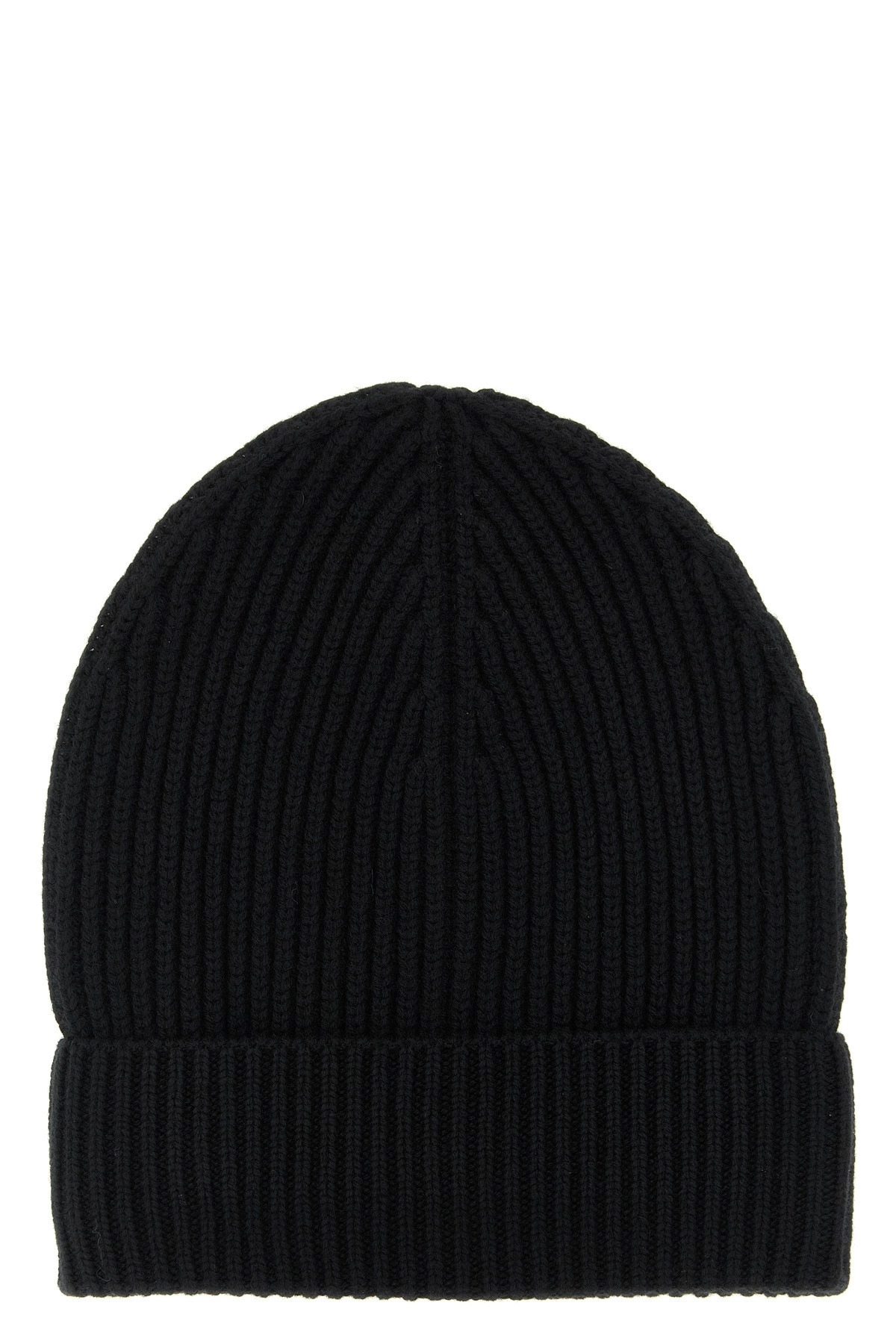 cod. FXQ19TJGME5N0000 Turn-up wool and cashmere knit beanie. Color: Black Size & Fit: One size Composition: 90% wool, 10% cashmere Made in: Italy