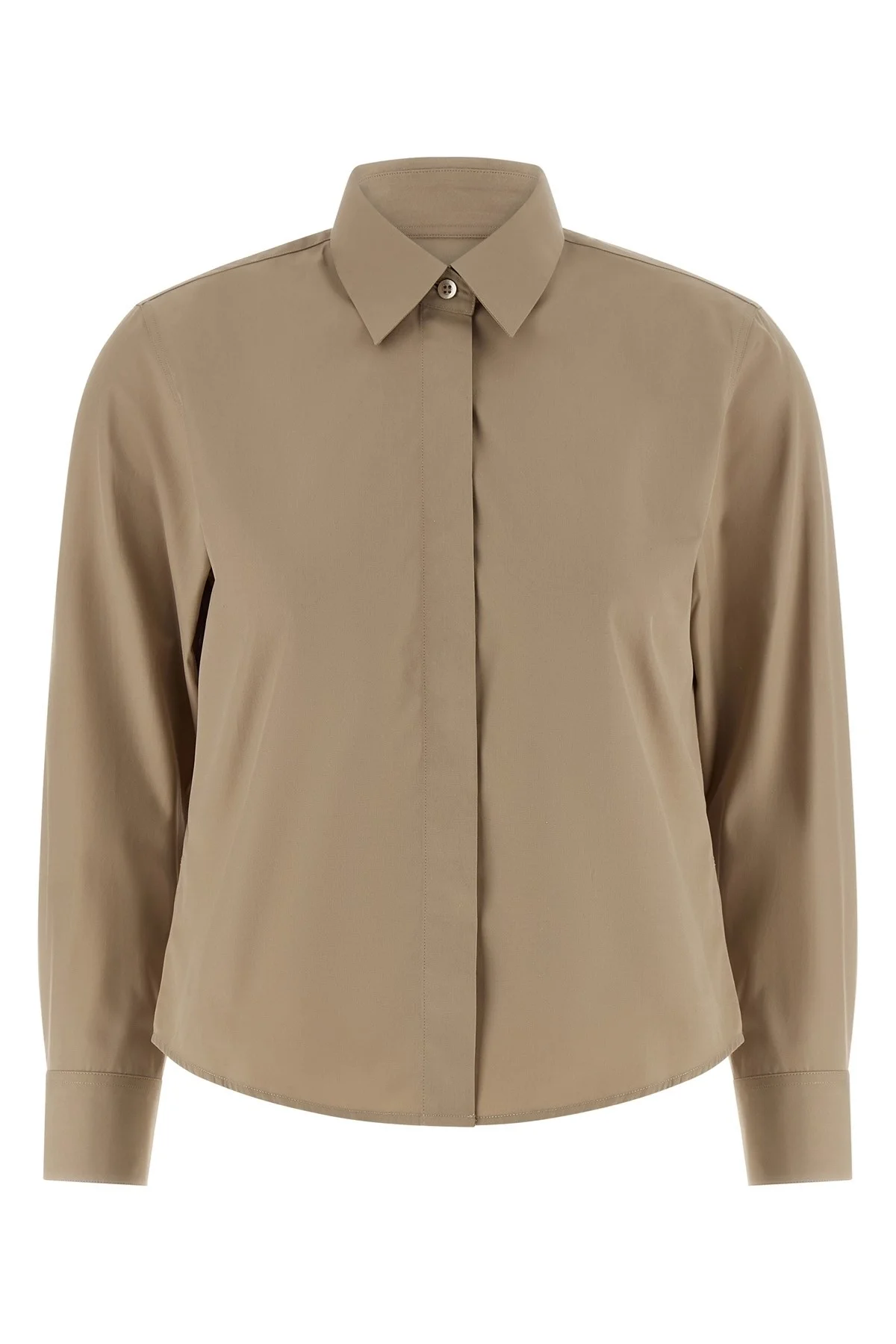 cod. 2611307013314101 'Clavini' crop shirt in cotton poplin with concealed front button closure, long cuffed sleeves. Color: Beige Size & Fit: boxy fit - FRENCH size Composition: 100% cotton Made in: Portugal