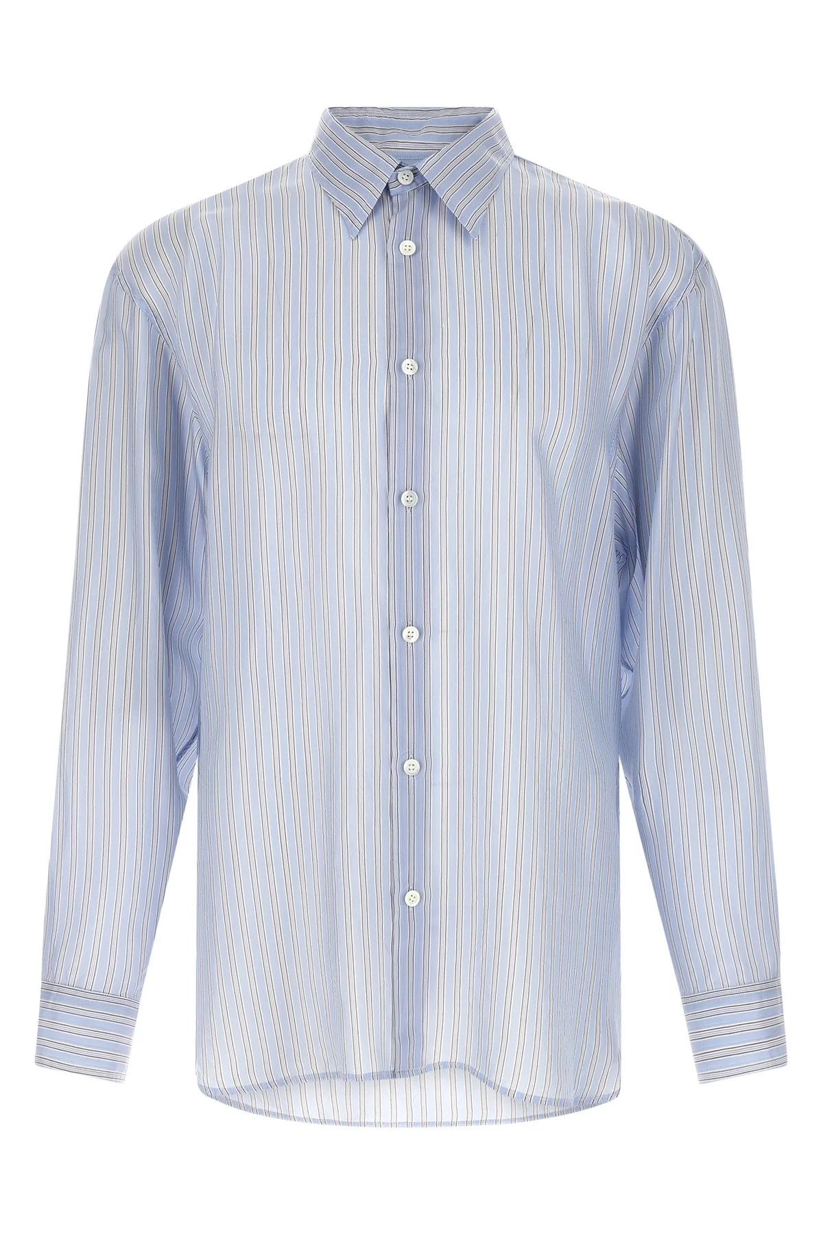 cod. 2610207323276514 'Croom' cupro shirt with striped pattern, front button closure, long sleeves with cuffs and dropped shoulder, side slits, rounded and asymmetrical hem. Color: Light Blue Size & Fit: Comfort fit Composition: 100% cupro Made in: Portugal