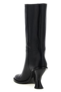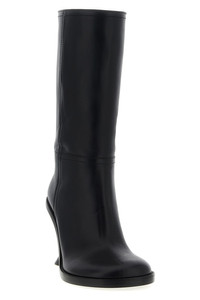 cod. 252011719102900 Leather boot, round toe, side zip closure, curved wedge heel, leather sole. Color: Black Size & Fit: EU WOMAN - Heel: 9 cm Composition: 100% calfskin leather (Bos Taurus) Made in: Italy