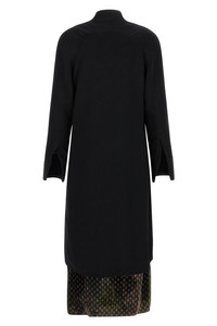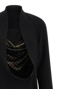 cod. 2520110722190900 Double layer 'Delsey' midi dress consisting of a solid color outer part with a wide semi-rigid ribbed round neckline, long sleeves with open cuffs, side zip closure and a patterned velvet inner part with a shawl round neckline and a fluid skirt. Color: Multicolor Size & Fit: true to size fit - FRENCH size Composition: 60% polyester 33% hp 7% silk Made in: Poland