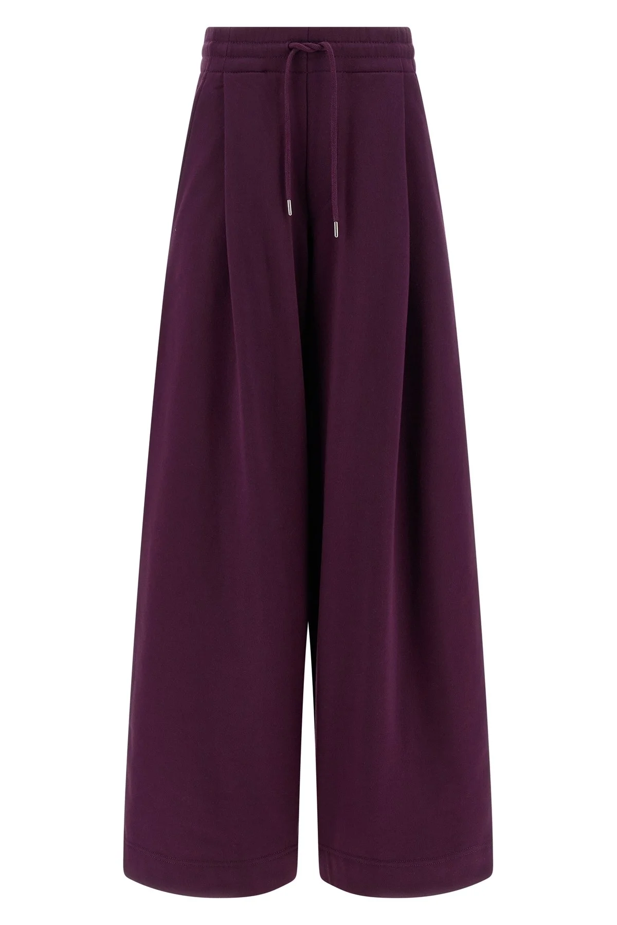 cod. 2611311113611357 'Hadium' brushed cotton trousers, high waist, trompe l'oeil flap, adjustable drawstring elastic at the waist, pockets, pinces, extra wide and straight leg. Color: Purple Size & Fit: true to size fit Composition: 100% cotton Made in: Turkey