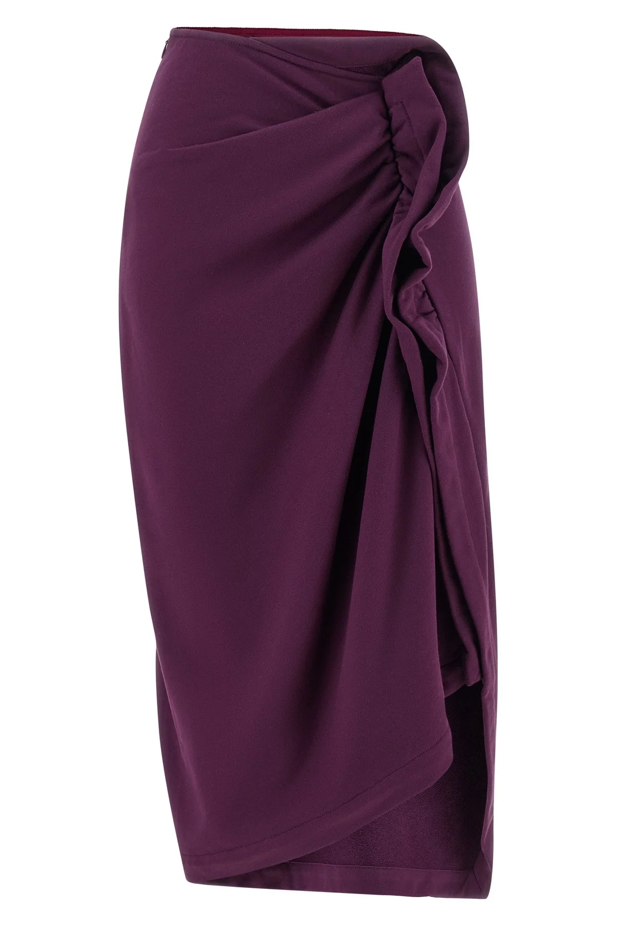 cod. 2611311123611357 'Hanam' midi skirt in fleece cotton, ruffles with draping and central split, and asymmetrical hem. Color: Purple Size & Fit: slim fit - FRENCH size Composition: 100% cotton Made in: Turkey