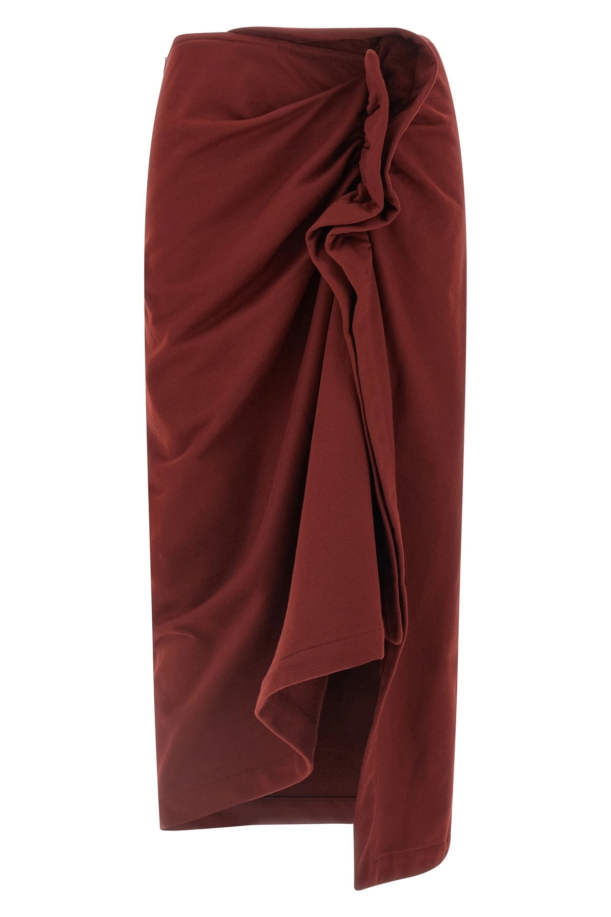cod. 2520111402611374 'Hanam' cotton skirt with front ruffles detail, side zip closure. Color: Bordeaux Size & Fit: True to size fit French sizing Composition: 100% cotton Made in: Turkey