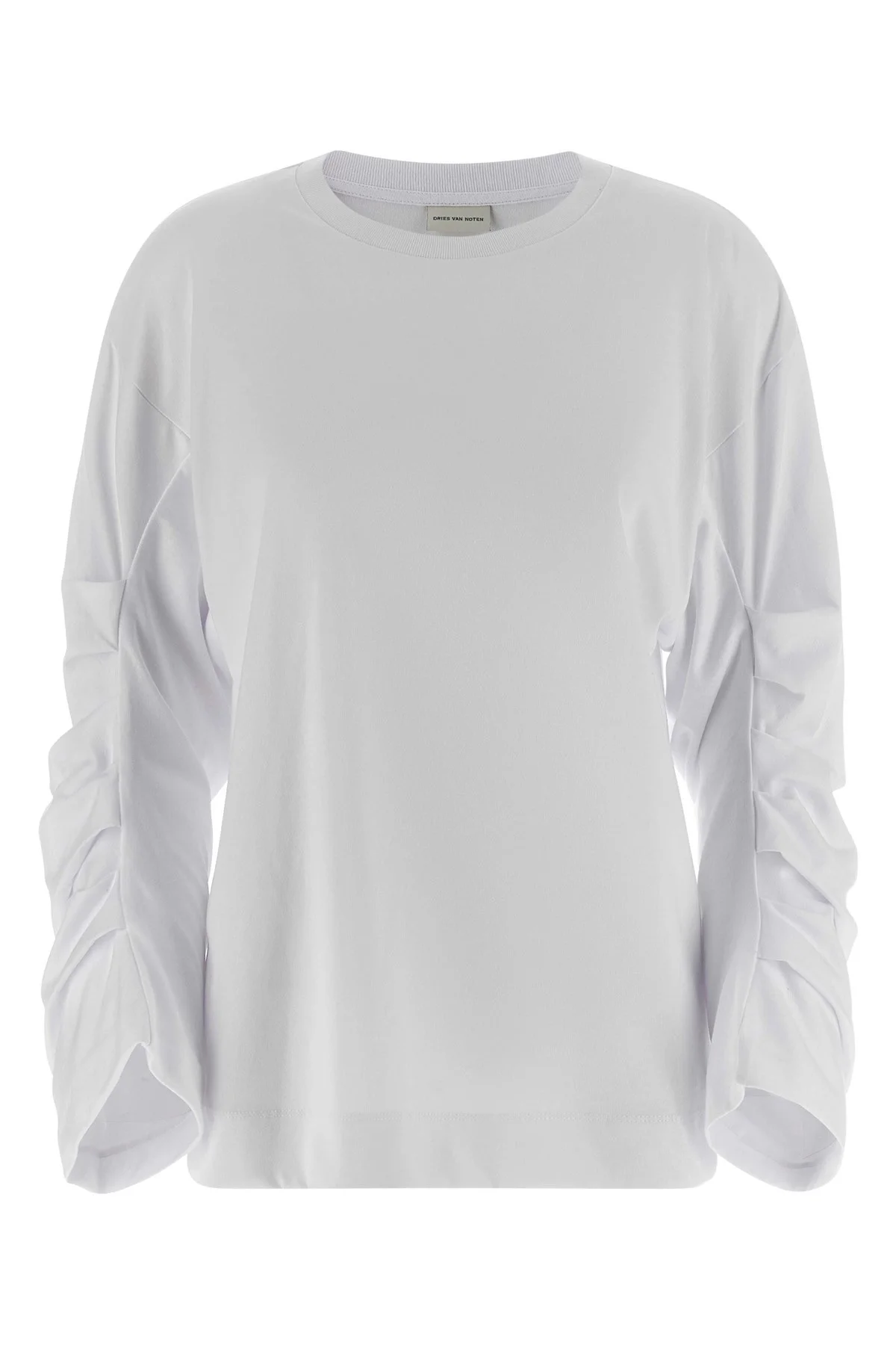 cod. 2520111102603001 'Heynas' cotton jersey crew neck t-shirt with long pleated sleeves and dropped shoulders. Color: White Size & Fit: true to size fit Composition: 100% cotton Made in: Turkey