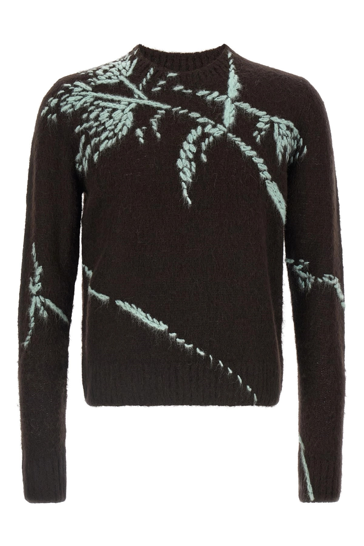cod. 2520212282709704 'Mouche' sweater in alpaca and merino wool blend with embroideries, crew neck, long sleeves. Color: Brown Size & Fit: true to size fit Composition: 60% alpaca wool 25% wool 15% polyamide Made in: China
