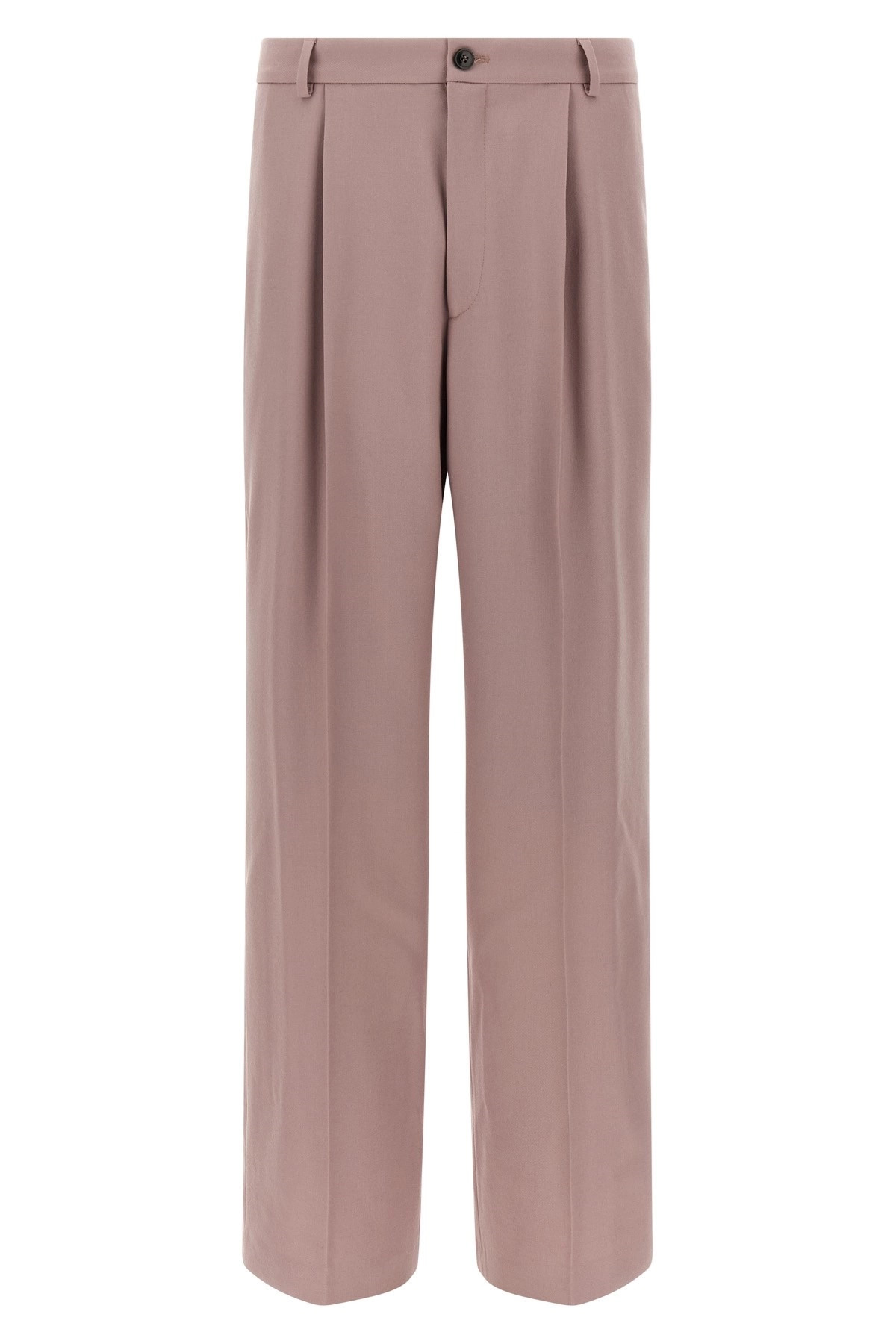 cod. 2520209002246406 'Penrud' wool pants, pince, stretched pleat, wide and straight leg, front zip and button closure, pockets. Color: Pink Size & Fit: true to size fit Composition: 100% wool Made in: Hungary
