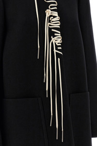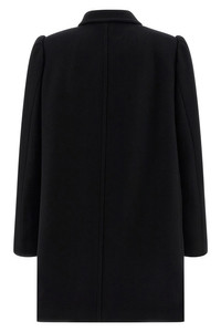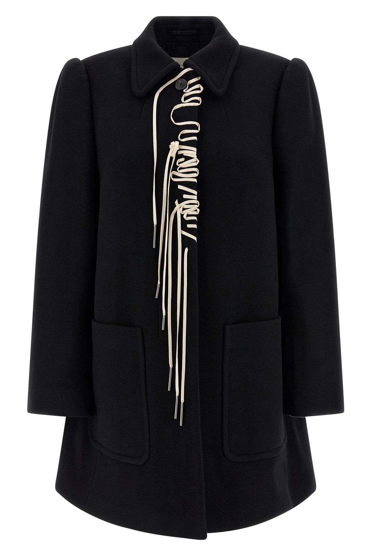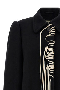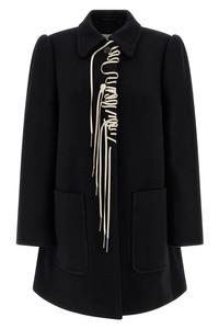 cod. 2520102692216900 Rebela' wool blend coat with shirt collar, concealed front button closure with contrasting whiplash decorations, pockets, long sleeves with crinkled shoulders, lining. Color: Black Size & Fit: true to size fit Composition: 70% wool, 30% polyamide Made in: India