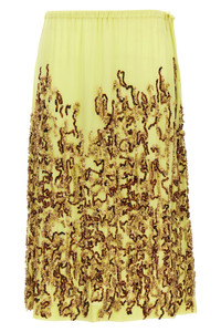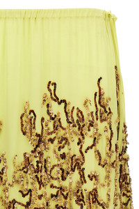 cod. 2510108371486201 Salga' silk midi skirt with sequin embroidery, adjustable drawstring at the waist. Color: Yellow Size & Fit: true to size fit FRENCH size Composition: 100% silk Made in: India