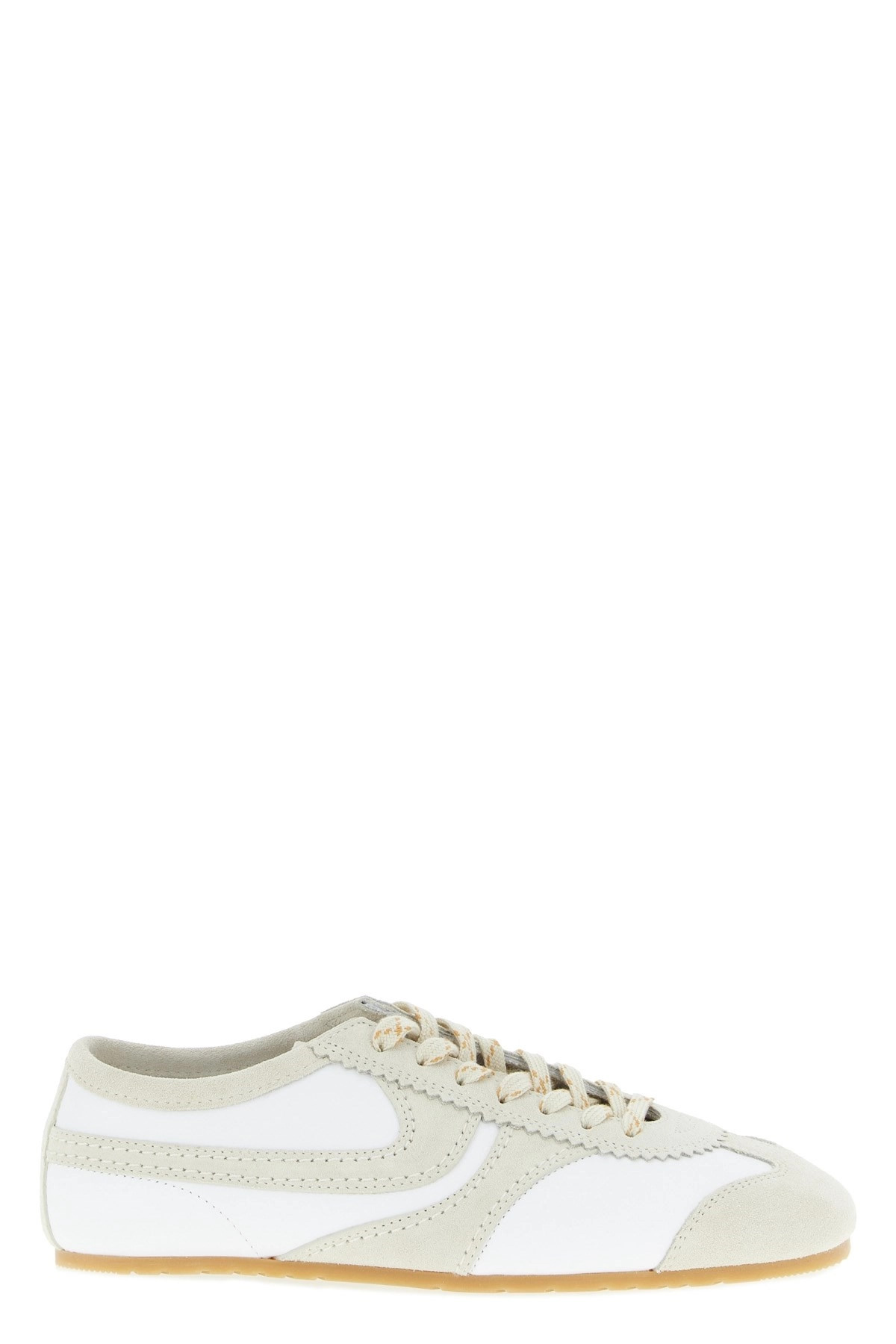 White & Beige Suede Sneakers