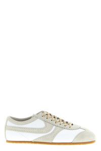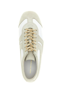 cod. 252011721117001 Suede sneakers with leather details and scalloped edges, lace-up closure, rubber sole. Color: White Size & Fit: EU WOMEN Composition: 100% calfskin leather (Bos Taurus) Made in: Italy PROMO CODE NOT APPLICABLE