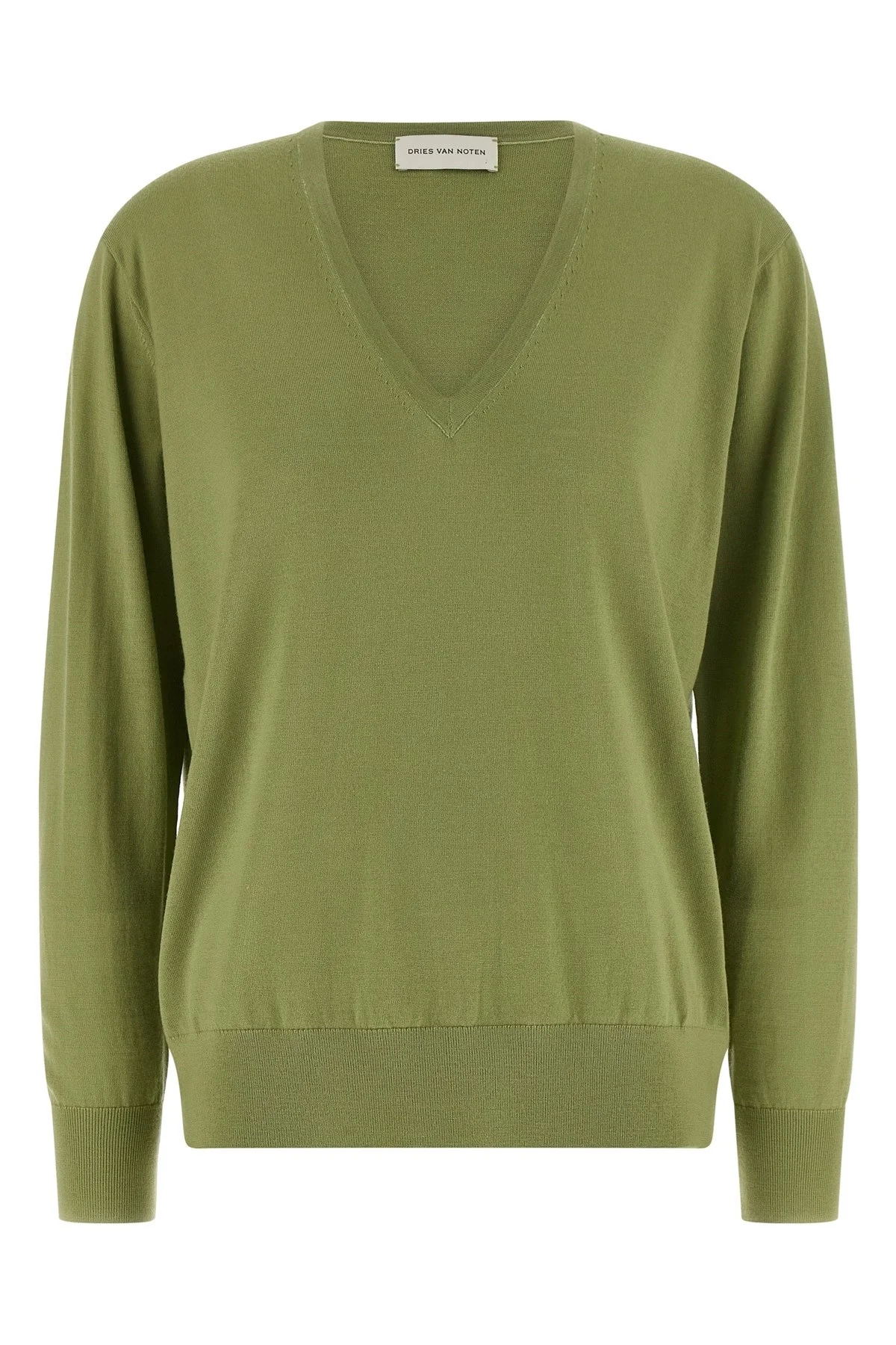 cod. 2611312023700607 'Tuomas' sweater in lightweight merino wool with V-neck, long cuffed sleeves. Color: Green Size & Fit: true to size fit Composition: 100% merino wool Made in: China