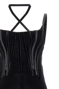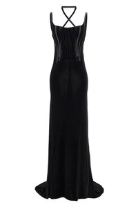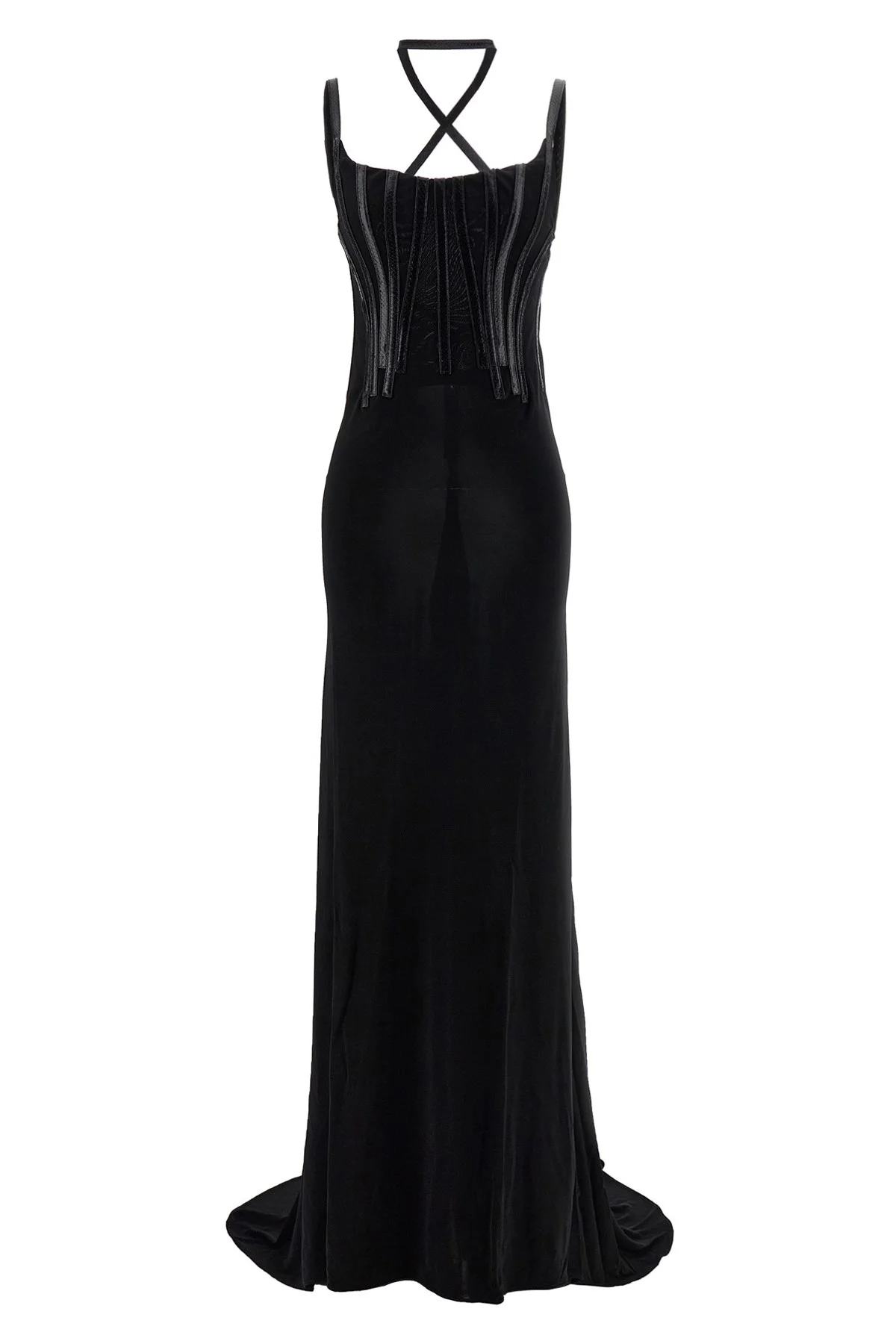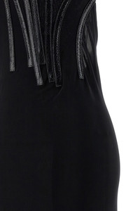 cod. S72CV0670S24588900 Maxi dress in stretch fabric, corset with shoulder straps and python leather details, deep back neckline, back zip closure. Color: Black Size & Fit: True to size fit Composition: 100% viscose Made in: Italy