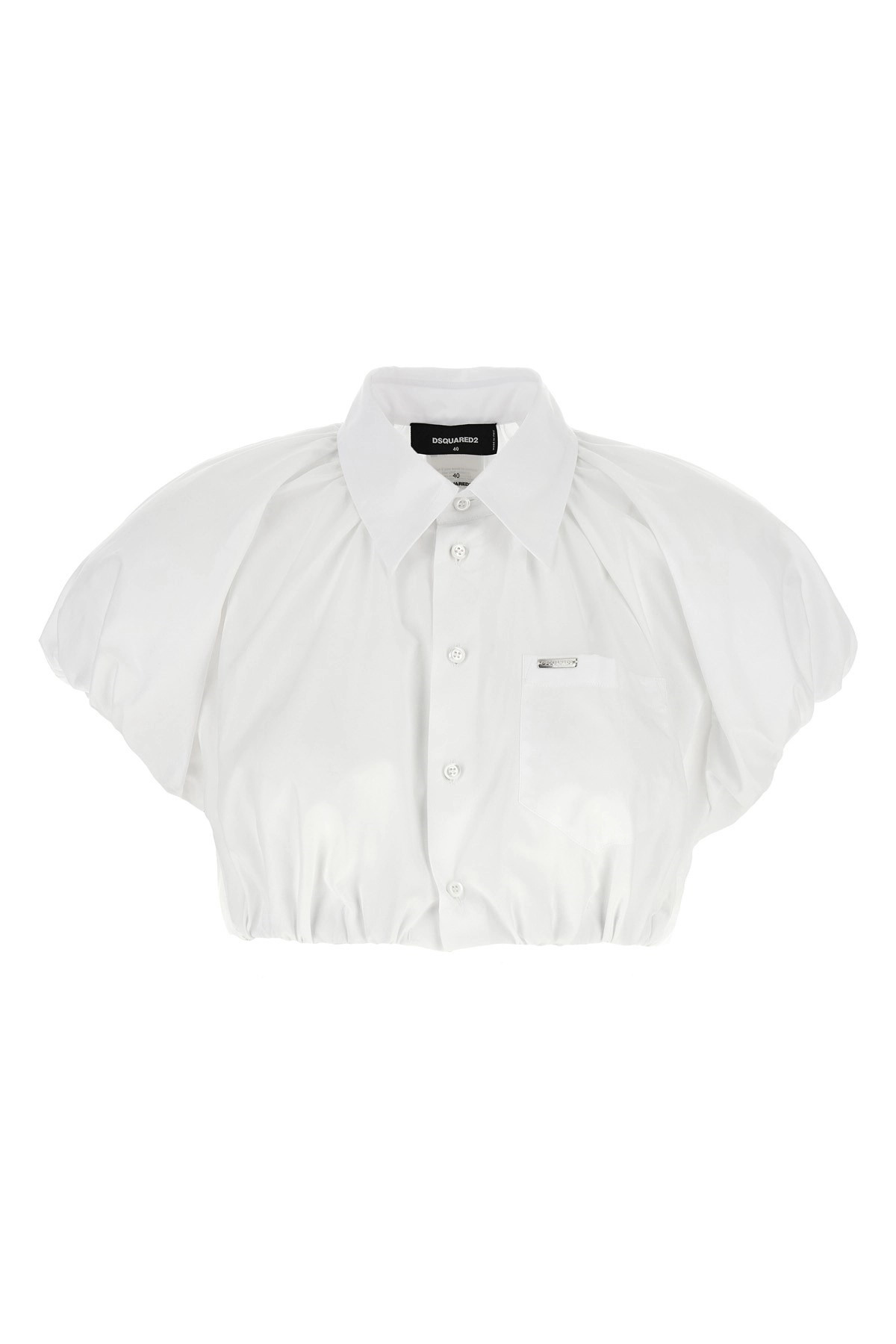 cod. S75DL0911S36275100 Cotton shirt, crop model, classy collar, metal logo application on the pocket, curled on the bottom and sleeves, front button closure. Color: White Size & Fit: True to size fit Composition: 100% cotton Made in: Italy