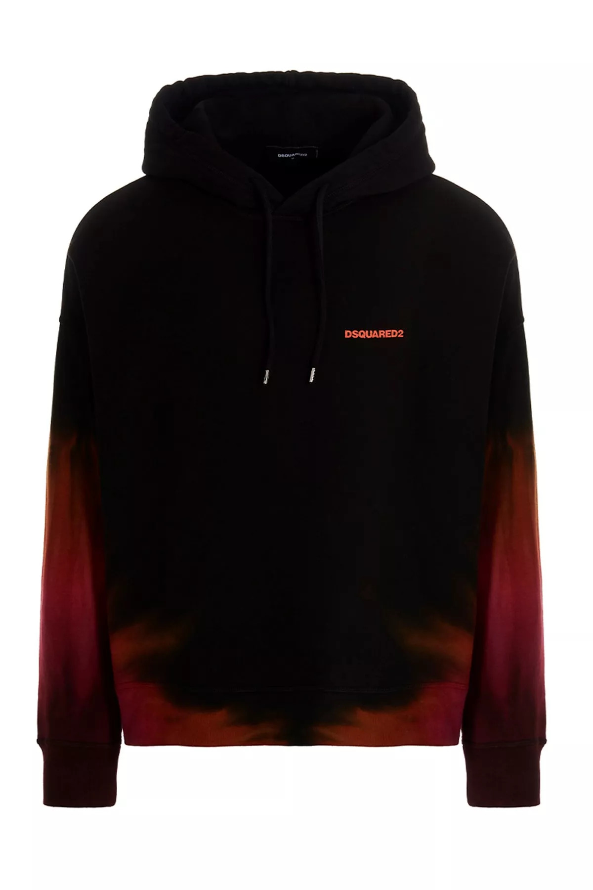 cod. S74GU0668S25030962A D2 Flame' cotton hoodie with degradè effect print detail, logo print, long cuffed sleeves. Color: Black Material: 100% cotton Made in: Italy Size&Fit: comfort fit