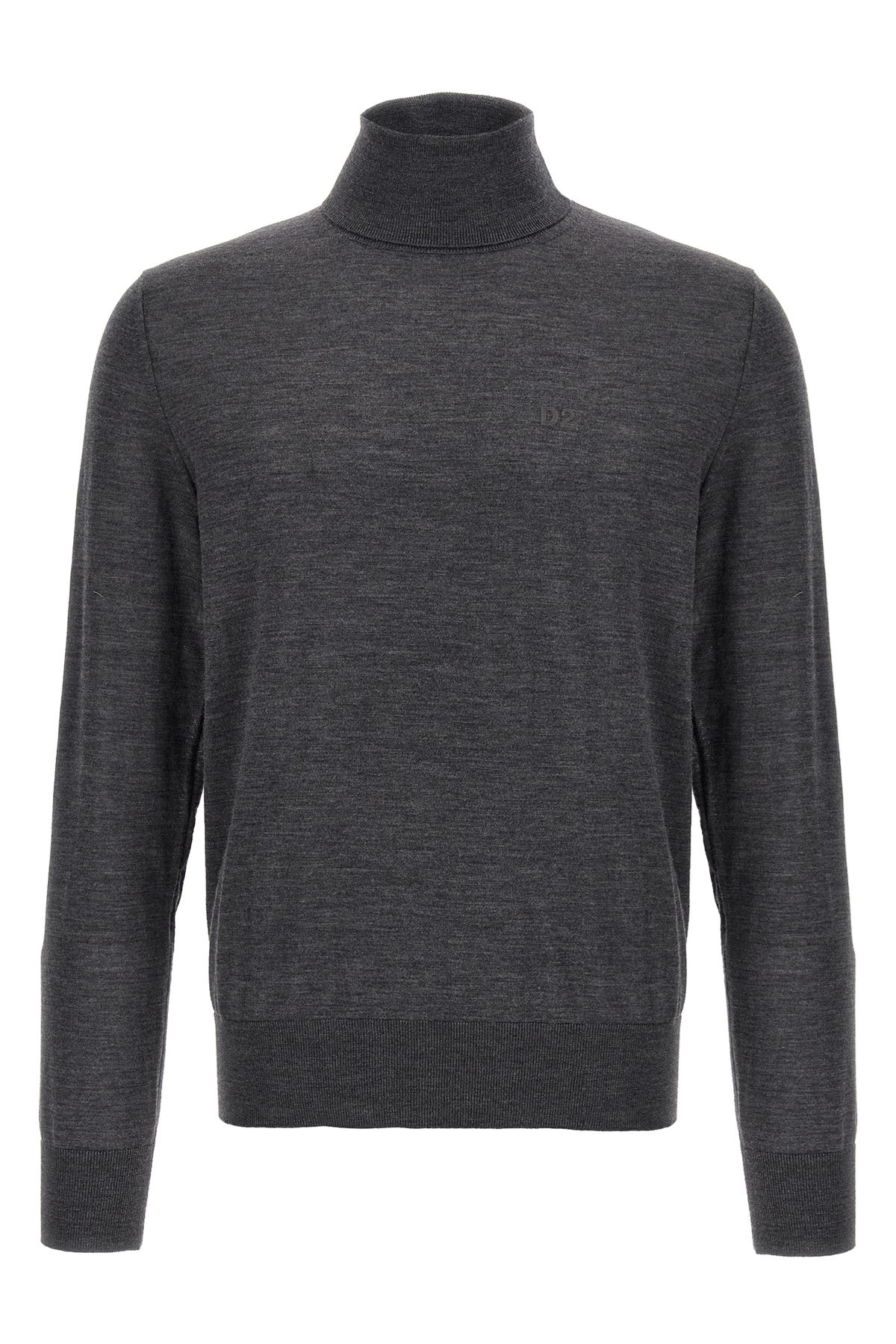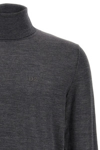 cod. S74HA1440S18310859 'D2' thin wool turtleneck sweater with front logo embroidery, long cuffed sleeves. Color: Gray Size & Fit: True to size fit Composition: 100% virgin wool Made in: China