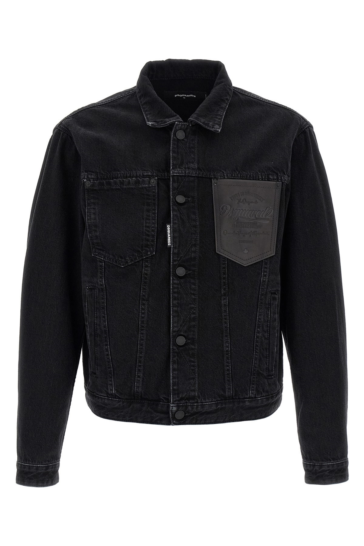 cod. S74AM1604D30015900 Classic denim jacket with collar and front button closure, tone-on-tone front leatherette logo applique detail, long sleeves with cuffs. Color: Black Size & Fit: True to size fit Composition: 100% cotton Made in: Italy