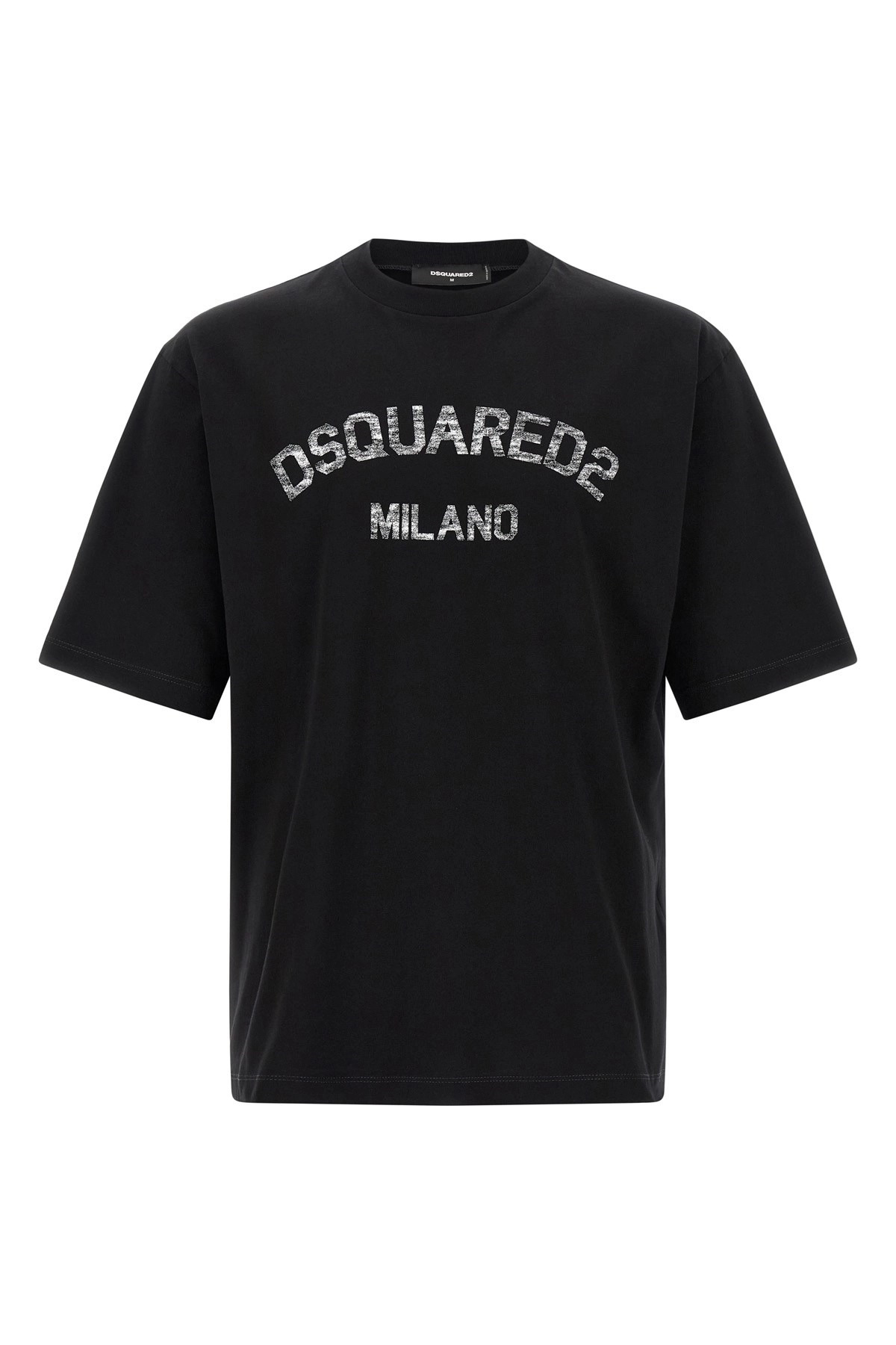 cod. S74GD1476D20020962X 'Faded Milano' cotton jersey T-shirt with faded front effect print, crew neck, short sleeves with dropped shoulders. Color: Black Size & Fit: Loose fit Composition: 100% cotton Made in: Romania