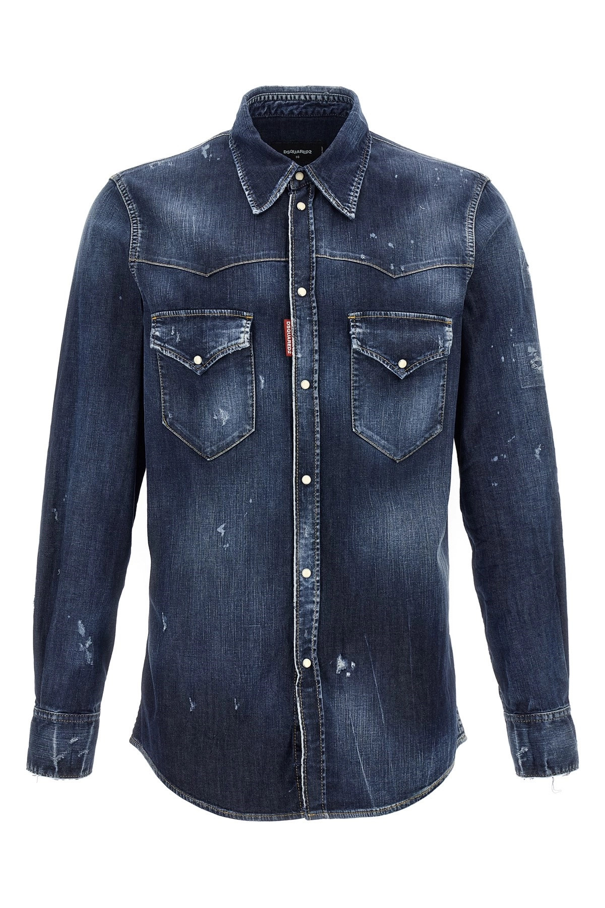 cod. S74DM0935S30341470 'Fashion western' denim shirt with used-effect details, snap button closure, double patch pocket, contrast stitching, long cuffed sleeves. Color: Blue Size & Fit: True to size fit Composition: 98% cotton, 2% elastane Made in: Italy