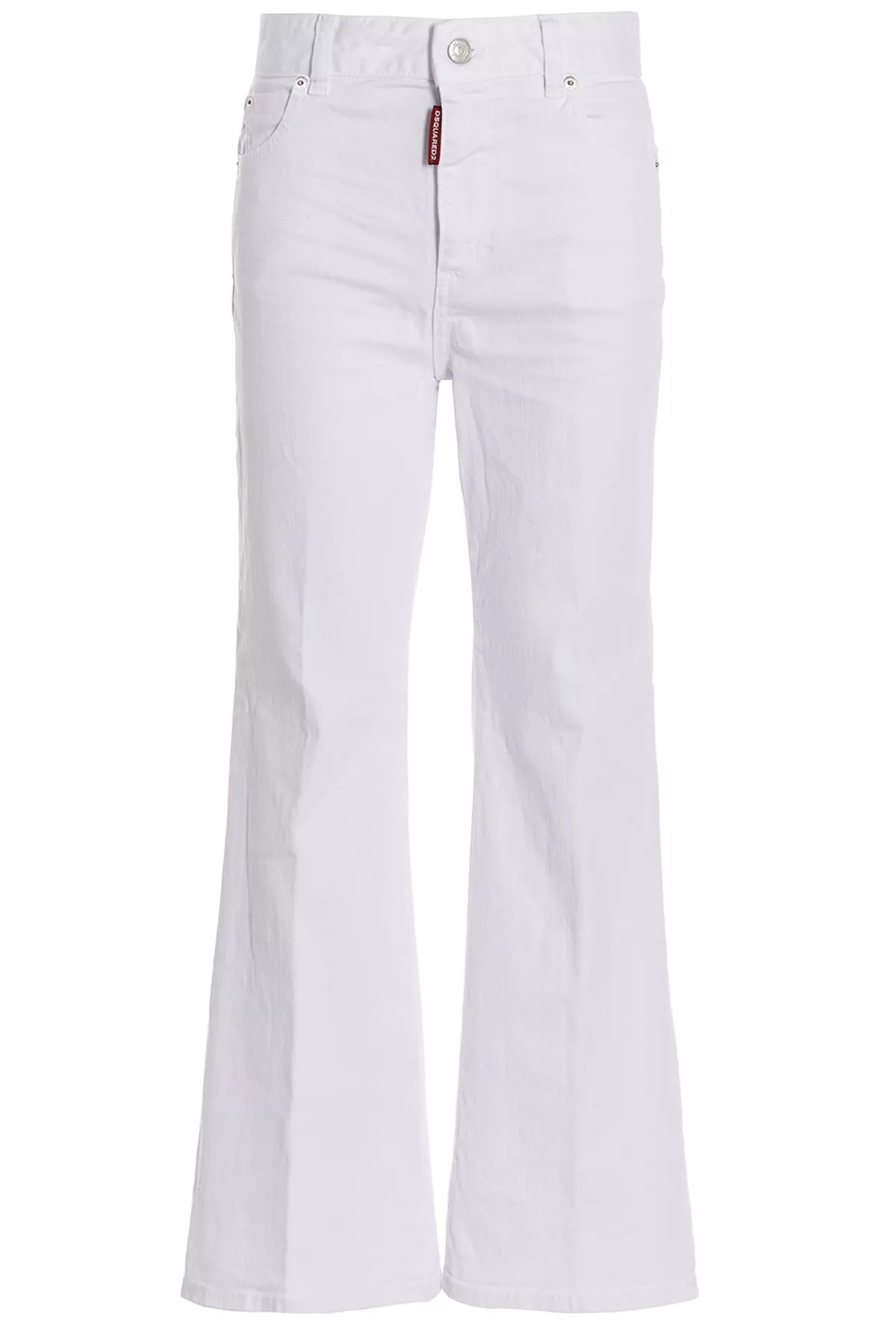 cod. S72LB0637S39781100 'Super Flared Cropped' cotton denim jeans with zip and button closure, five pockets, leather tag and a flared leg. Color: White Material: 98% cotton 2% elastane Made in: Italy Size &Fit: True to size fit