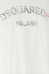 cod. S74GD1399D20020100 'Loose Fit' cotton T-shirt with vintage-effect print on the front, crew neck, short sleeves. Color: White Size & Fit: Comfort fit Composition: 100% cotton Made in: Romania
