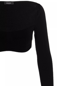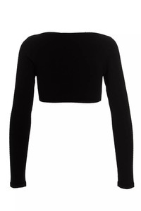 cod. S75HA1173S18170900 Viscose blend cropped sweater with ribbed pock, squared neckline and long sleeves. Color: Black Material: 83% viscose 17% polyester Made in: Italy Size &Fit: True to size fit