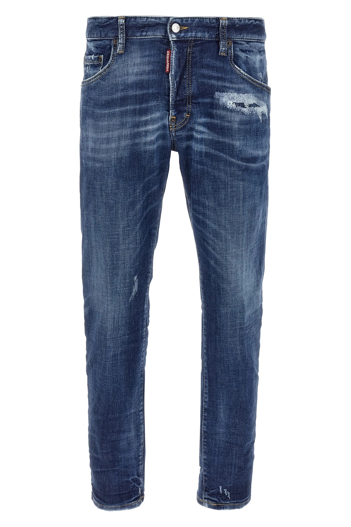 cod. S74LB1729S30872470 'Skater' stretch cotton denim jeans with used-effect details, button closure, five pockets, maxi leather logo tag. Color: Blue Size & Fit: True to size fit Composition: 93% cotton 4% polyester 3% elastane Made in: Italy