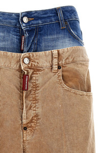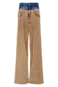 cod. S72LB0678S53162124 'Twin Pack' corduroy pants with denim insert, button closure, pockets, wide leg, leather logo tag. Color: Beige Size & Fit: true to size fit Composition: 97% cotton 3% elastane