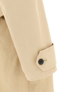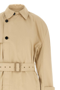 cod. ESUW251023SASA 'Classic' cotton canvas trench coat with front asymmetrical button closure, pockets, long sleeves, cape and back split, lining, adjustable and removable belt. Color: Beige Size & Fit: true to size fit Composition: 100% cotton Made in: China