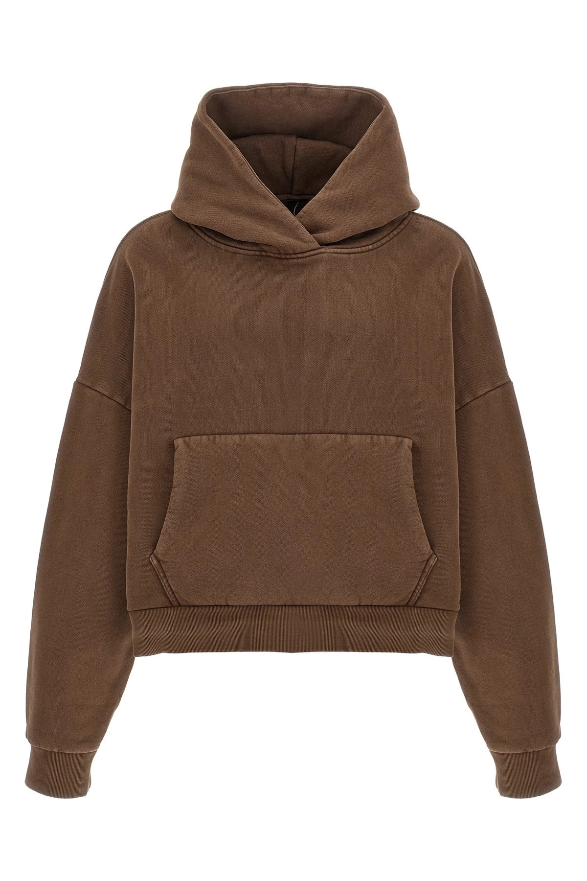 cod. ES2125BTBT Heavy cotton cropped hoodie with kangaroo pocket, long cuffed sleeves and dropped shoulders. Color: Brown Size & Fit: oversized fit Composition: 100% cotton Made in: China PROMO CODE NOT APPLICABLE