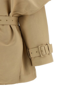 cod. ESWW251052SDSD 'Mini Scarfcoat' short cotton coat with lining, high neck, concealed front button closure with scarf detail to adjust as desired, cape and vent with back buttons, pockets, long sleeves with adjustable strap, removable belt. Color: Beige Size & Fit: Comfort fit Composition: 100% cotton Made in: China