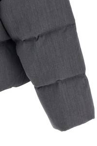 cod. ESUW251046GRGR 'MML Puffer' quilted melange wool down jacket with goose feather padding, standing collar, front zip and velcro closure, pockets, long sleeves with windproof cuffs and dropped shoulders, drawstring on the hem. Color: Gray Size & Fit: Comfort fit Composition: 100% wool Made in: China PROMO CODE NOT APPLICABLE