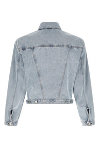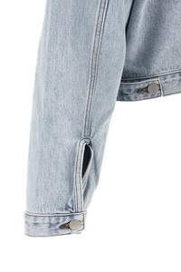 cod. ESSS26JA012596261 'Shrunken Denim' jacket in Japanese cotton denim with contrast stitching, inverted triangle silhouette, shirt collar, front button closure, pockets, padded shoulder, long cuffed sleeves, adjustable straps on the hem. Color: Light Blue Size & Fit: true to size fit Composition: 100% cotton Made in: China
