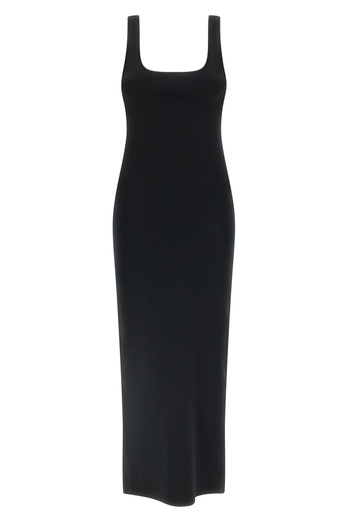 cod. ESSS26DR032370015 Sleeveless midi dress in stretch viscose with square neckline on the front and back, sheath silhouette. Color: Black Size & Fit: true to size fit Composition: 83% viscose, 17% polyester Made in: China