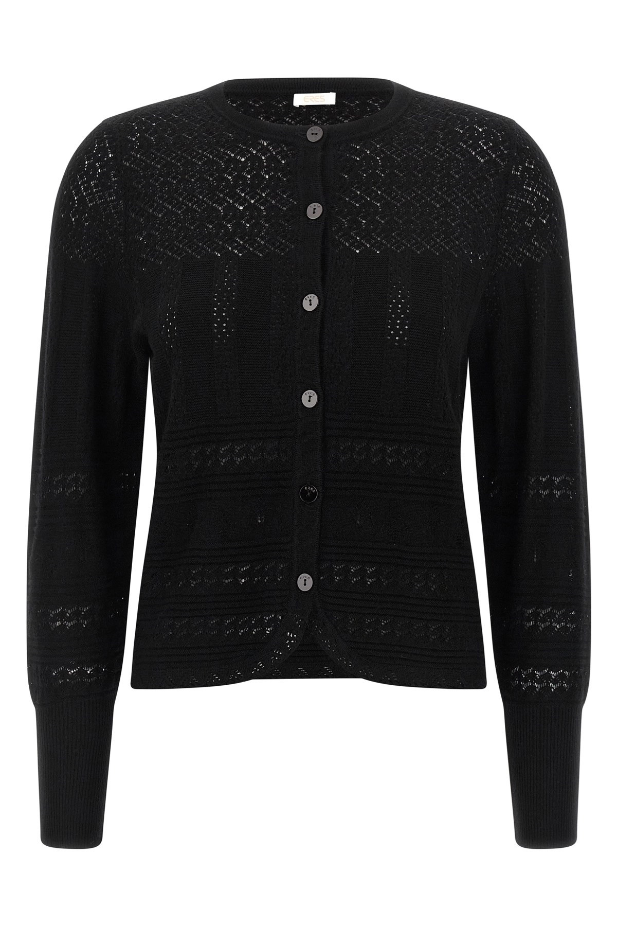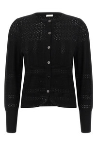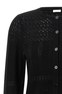 cod. 092512NOIR 'Trio' openwork cashmer blend wool cardigan, crew neck, front button closure, long sleeves with cuffs Color: Black Size & Fit: True to size fit Composition: 85% wool 15% cashmere Made in: China