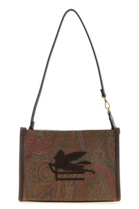 cod. WP2C0014AA027M0019 Small Paisley jacquard fabric 'Arnica' clutch bag with leather details, front 'Pegaso' logo embroidery, top zip closure, adjustable and removable shoulder strap. Color: Multicolor Size & Fit: W 21.5 x H 15.5 x D 5 cm Composition: 76% cotton, 24% polyester Made in: Italy