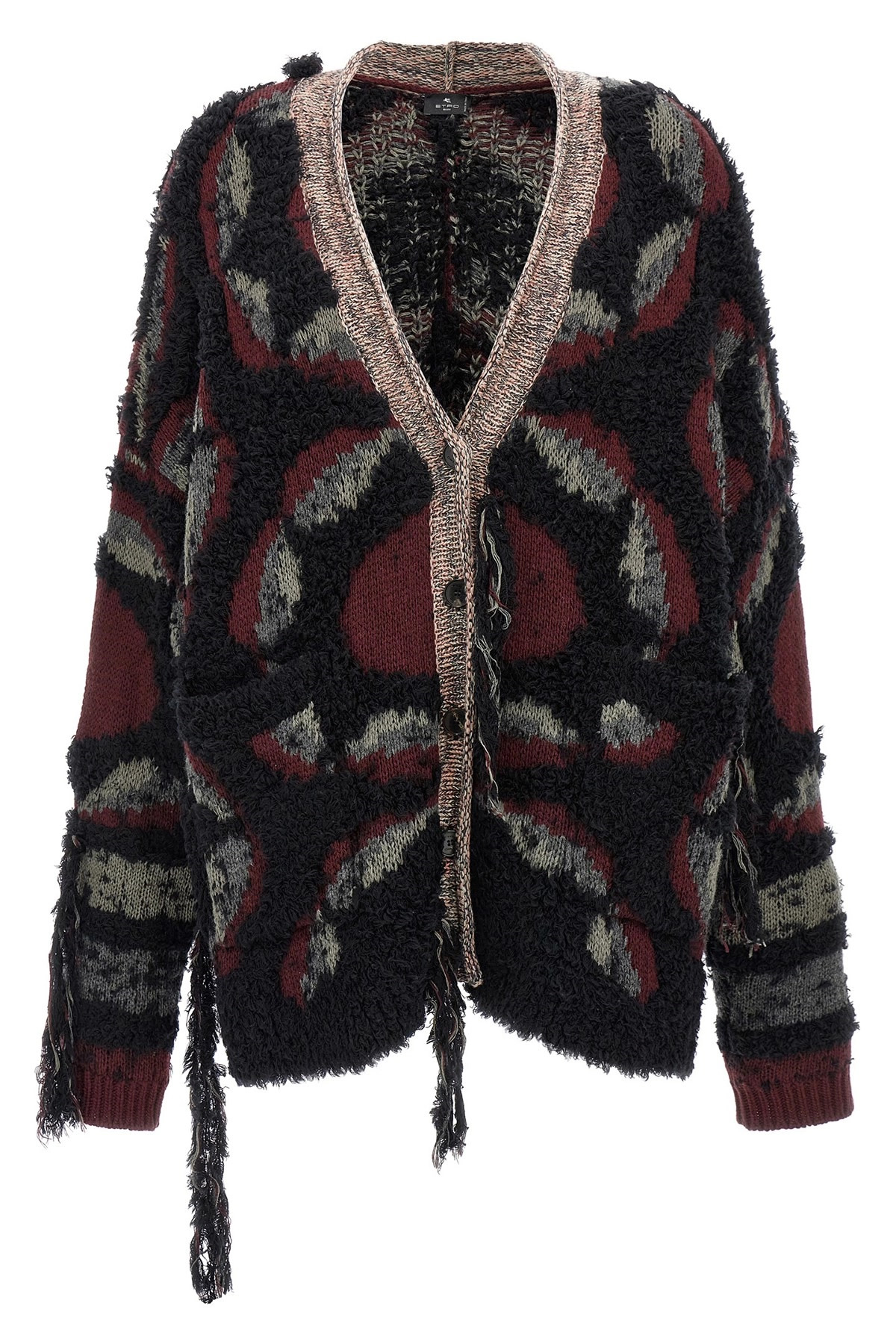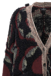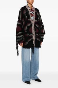cod. WRKE0195AQ045S9001 Oversize wool blend cardigan with fringes, button closure, pockets, long cuffed sleeves. Color: Multicolor Size & Fit: oversized fit Composition: 95% wool 4% polyamide 1% vi Made in: Italy