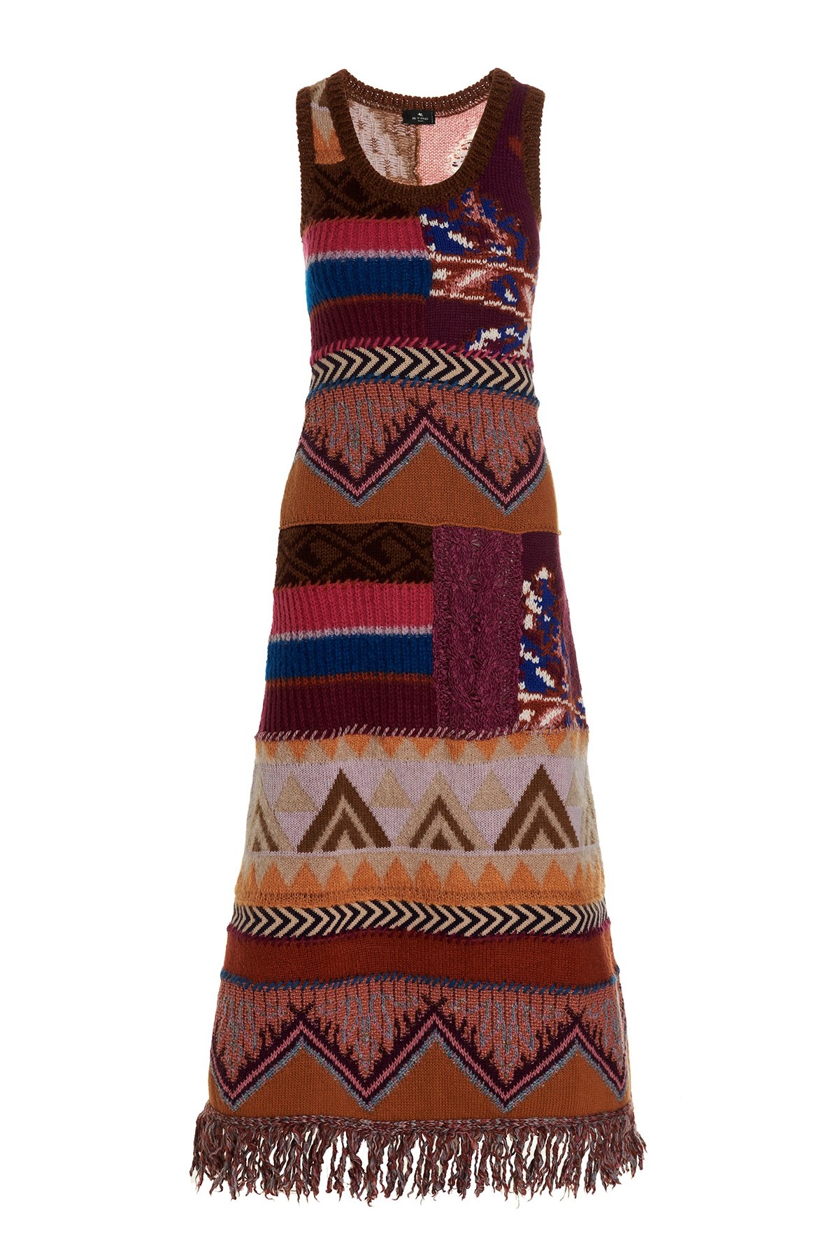 cod. 1393491948001 Elena' long multicolor and multifantasia knit dress with crewneck and no sleeves and fringes on the hem. Color: Multicolor Size & Fit: True to size fit