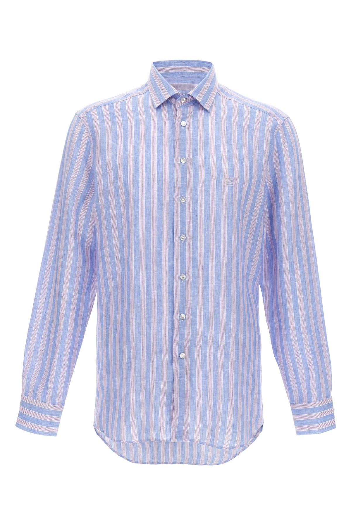 cod. MRIB000299TR336S9880 Striped linen shirt, front 'Pegaso' logo embroidery, button closure, long cuffed sleeves. Color: Multicolor Size & Fit: true to size fit Collar size Composition: 100% linen Made in: Italy