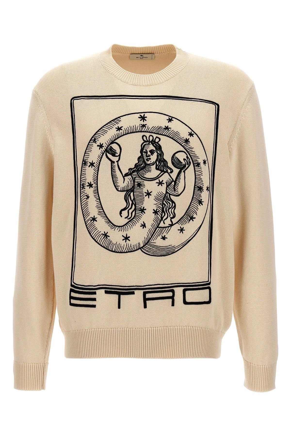 cod. MRKF0003AC233W3796 Cotton sweater with front embroidered logo, crew neck, long cuffed sleeves. Color: Beige Size & Fit: true to size fit Composition: 100% cotton