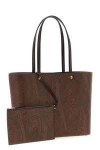 cod. WP1D0024AA001M0019 Medium 'Etro Essential' shopping bag in matt-grain coated Paisley jacquard cotton fabric with canvas doubling, double fixed leather handle with engraved logo button detail, snap hook closure, removable matching clutch bag. Color: Multicolor Size & Fit: W 33 x H 28 x D 14 cm Composition: 76% cotton, 24% polyester Made in: Italy