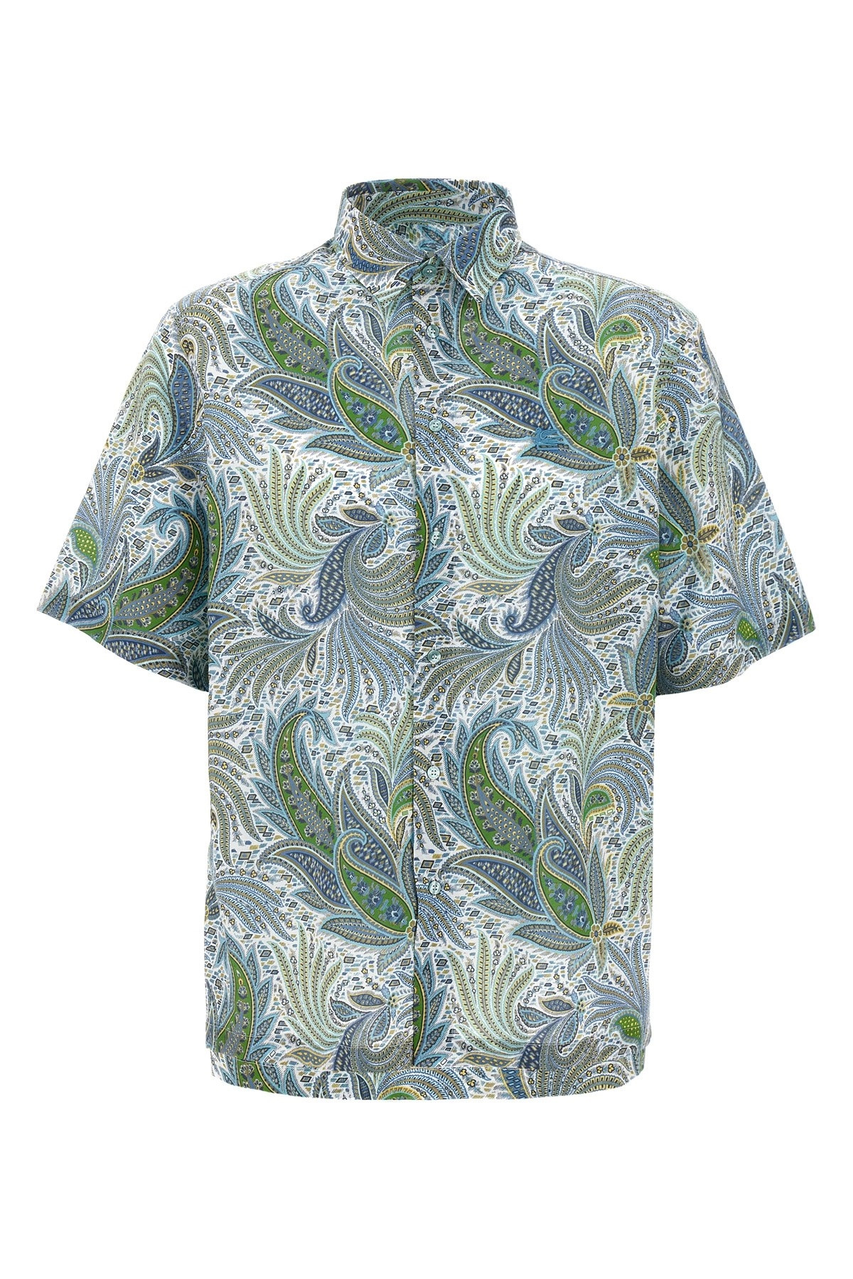 cod. MRIC001199SA5F1X0883 Cotton shirt with all-over maxi flowered Paisley print, tone-on-tone embroidered logo on the front, button closure, and short sleeves. Color: Multicolor Size & Fit: oversized fit Composition: 100% cotton Made in: Italy