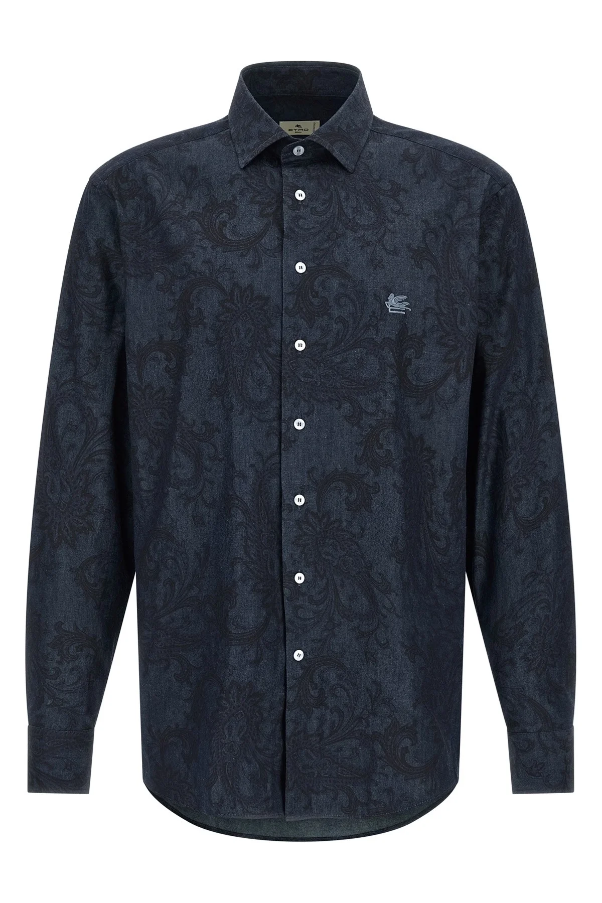 COTTON DENIM SHIRT WITH LEAFY PAISLEY MOTIF AND PEGASO