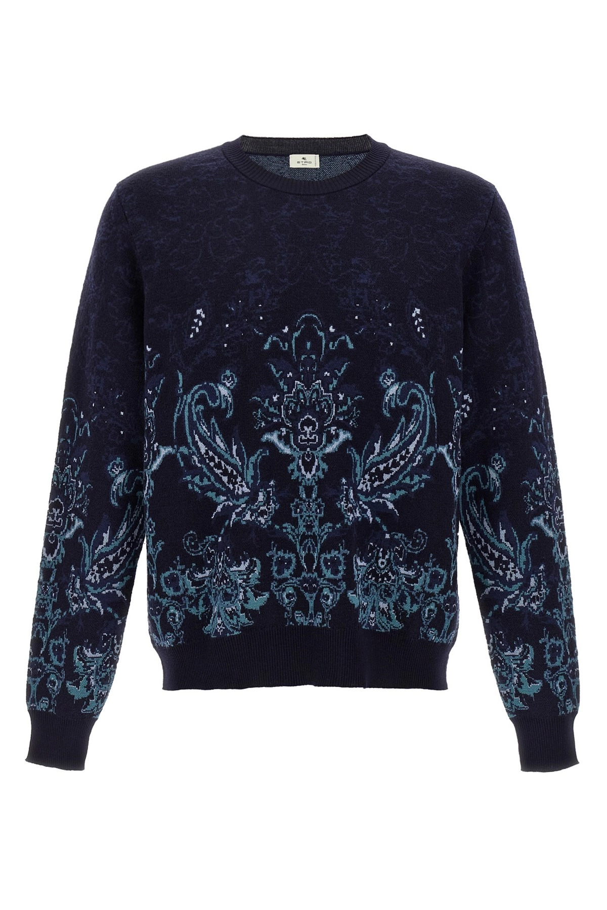 cod. MRKF0096AQ177S9883 Wool sweater with Paisley detail, crewneck, long sleeves with ribbed cuffs and hem. Color: Multicolor Size & Fit: True to size fit Composition: 100% wool Made in: Italy
